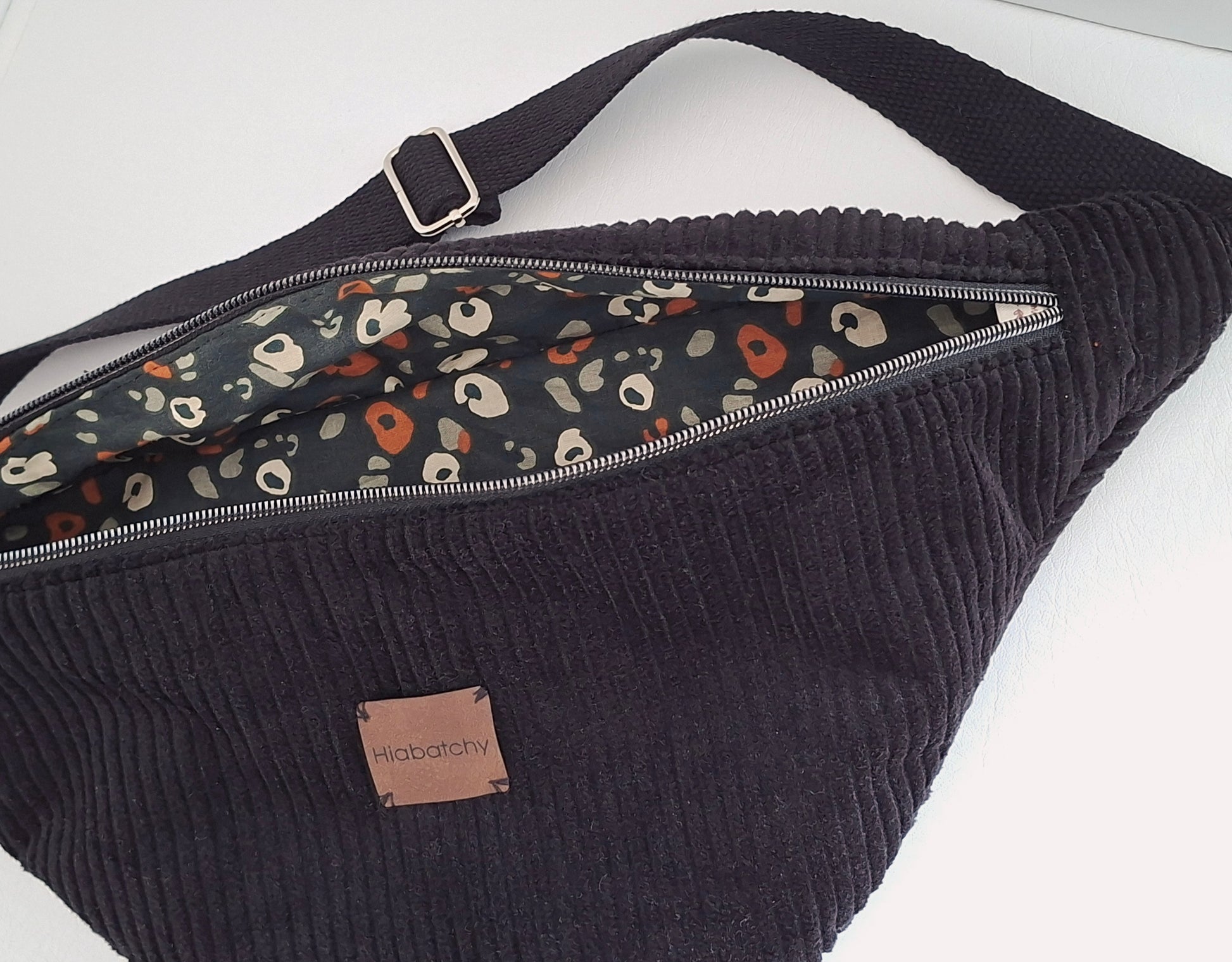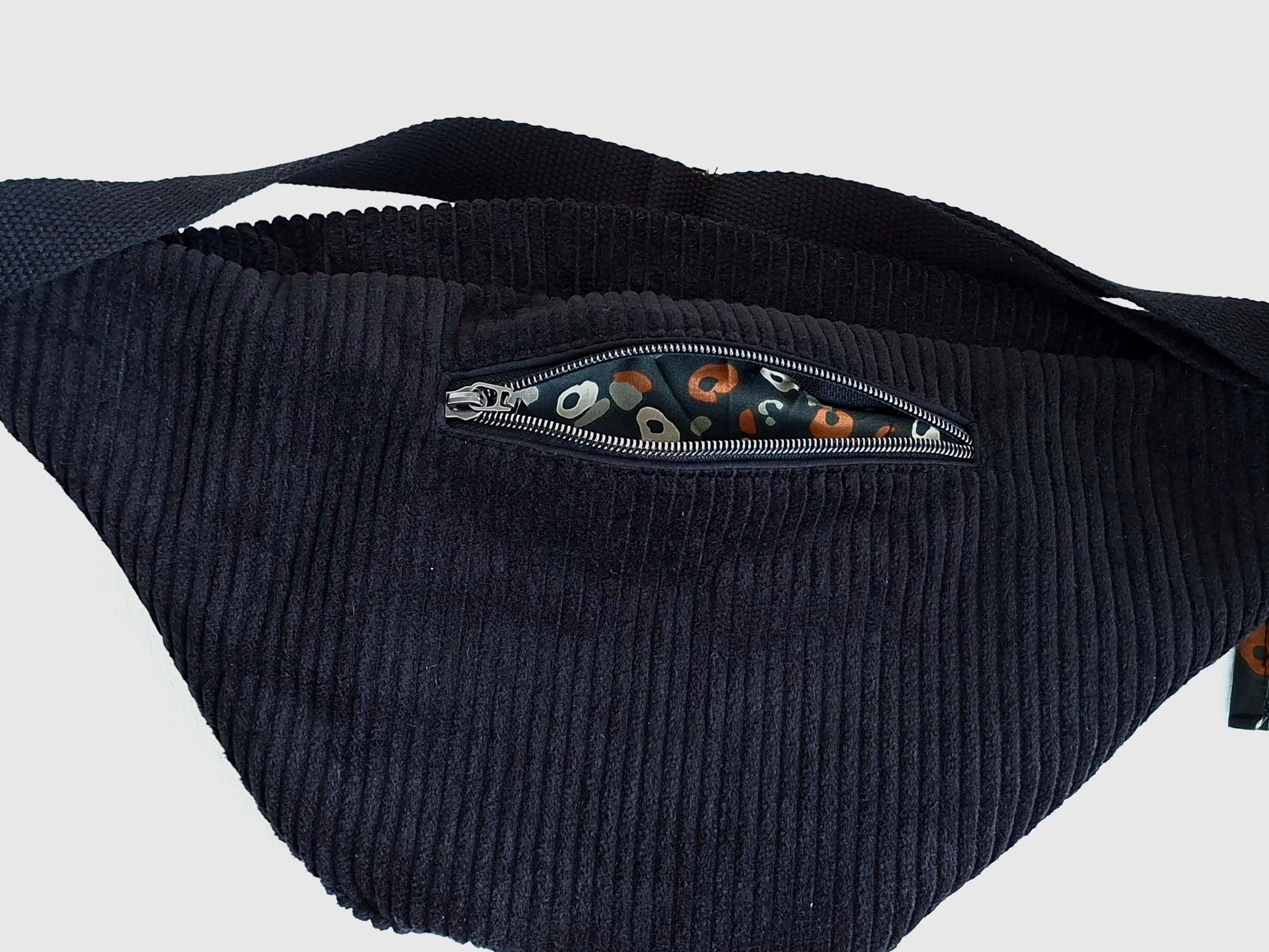 Bauchtasche aus Schwarzen Cord mit Leo-Print Futter