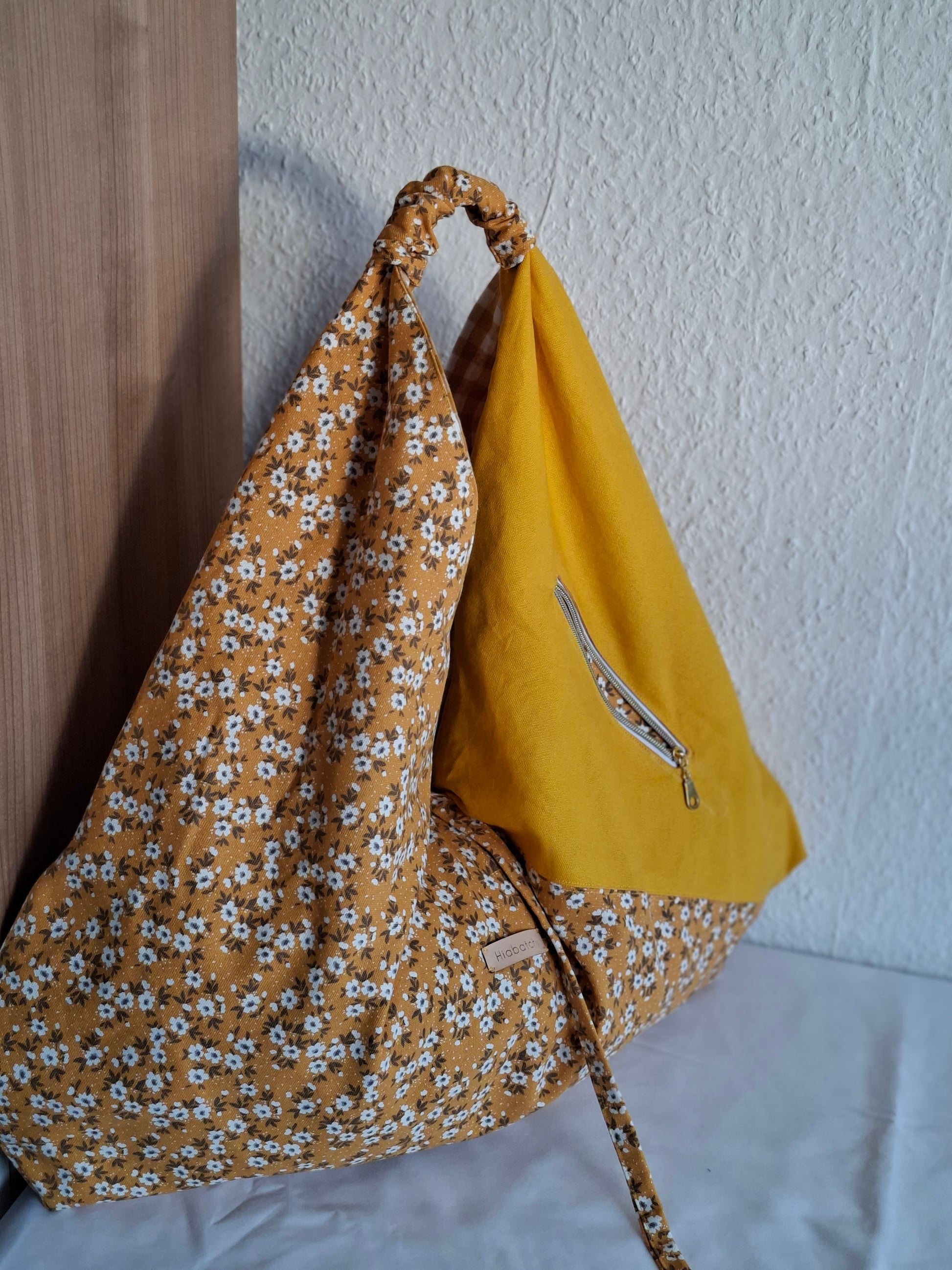 Origamihandtasche Senfgelb mit Blümchen, hobobag